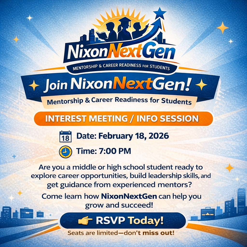 NixonNextGen empowers middle and high school students through mentorship, career readiness, education, and community programs. We provide guidance and resources to help youth achieve their goals and make a positive impact.